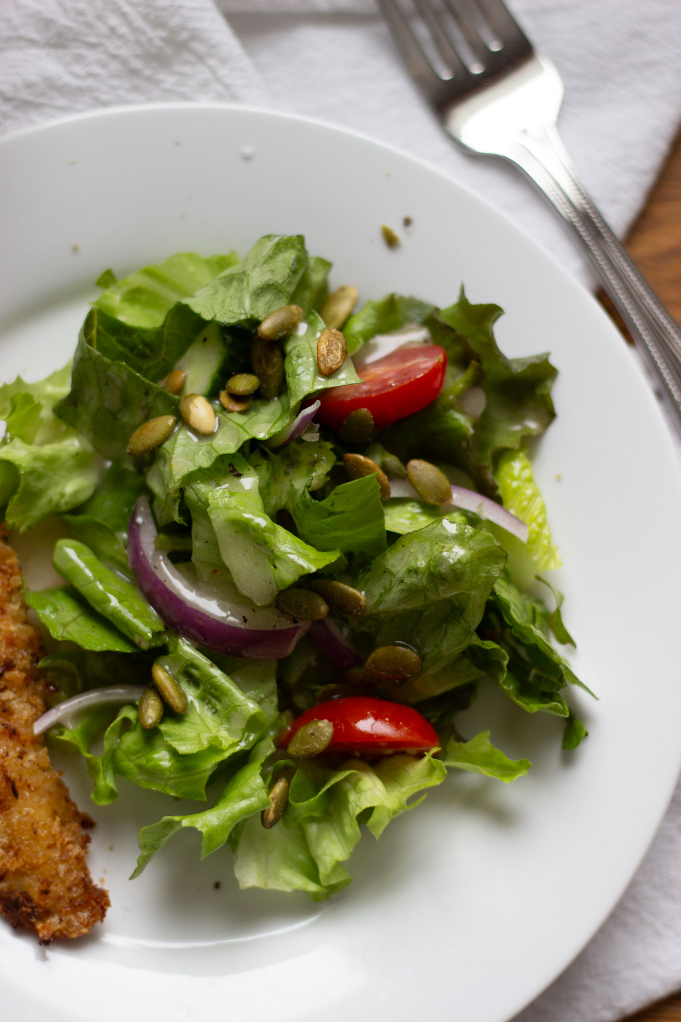 Really, you can put this on ANY green salad. It’s so amazing to have some in your fridge and you can toss together a fancy-feeling salad with minimal effort.